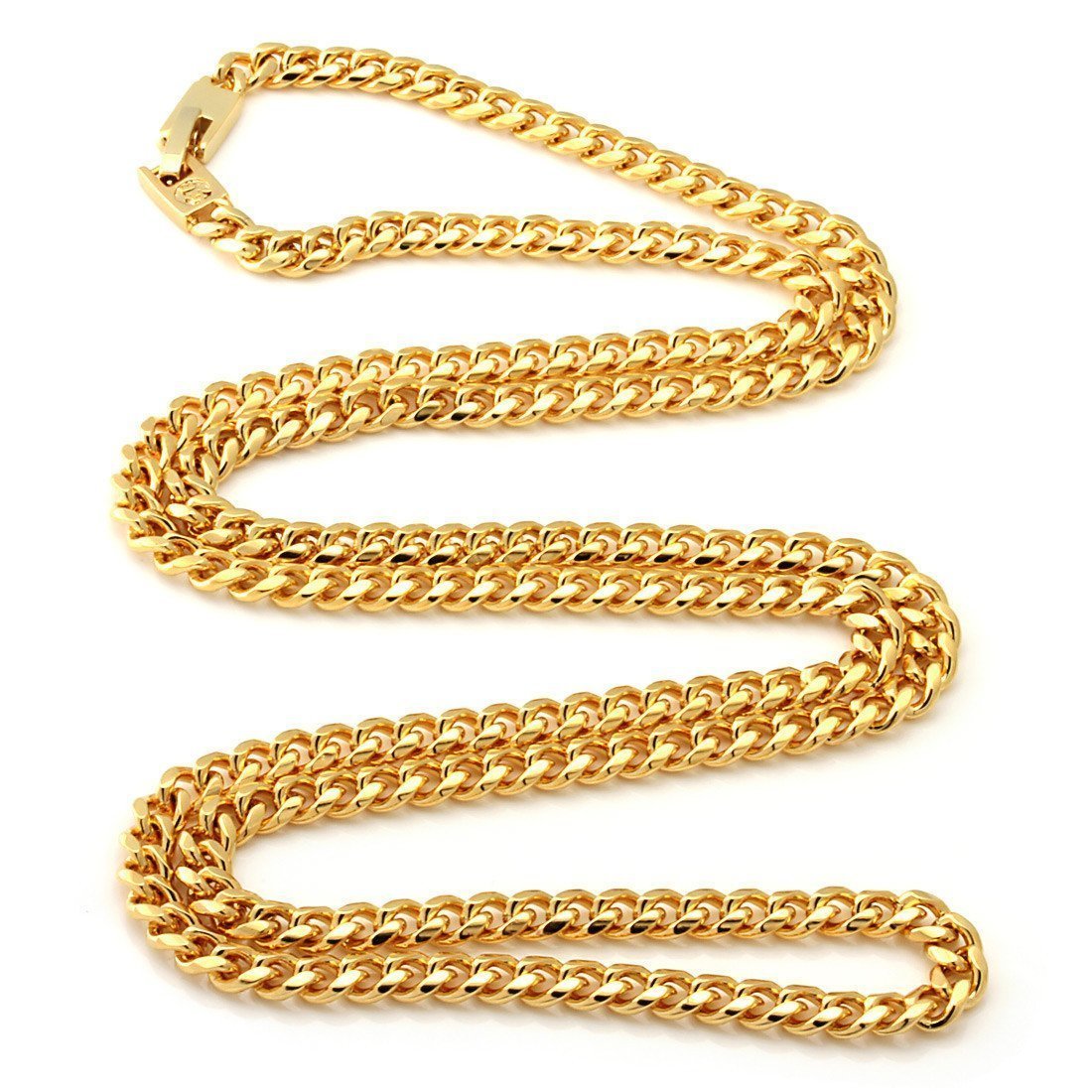 This 14K gold-iconic Miami Cuban Curb Chain features a rounder, thicker style. Built with a fold over clasp, the Miami Cuban Curb Chain comes made from solid stainless steel.