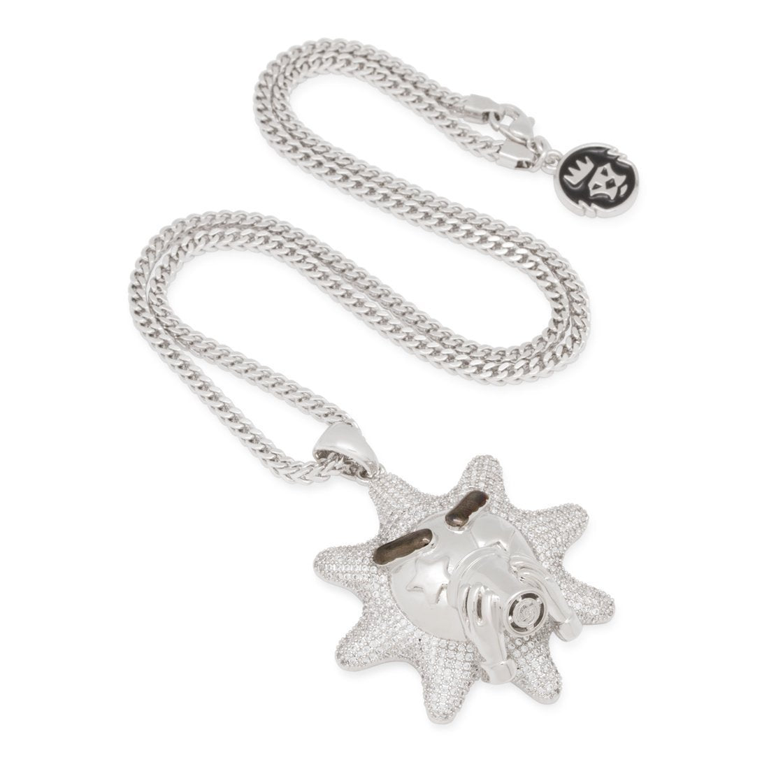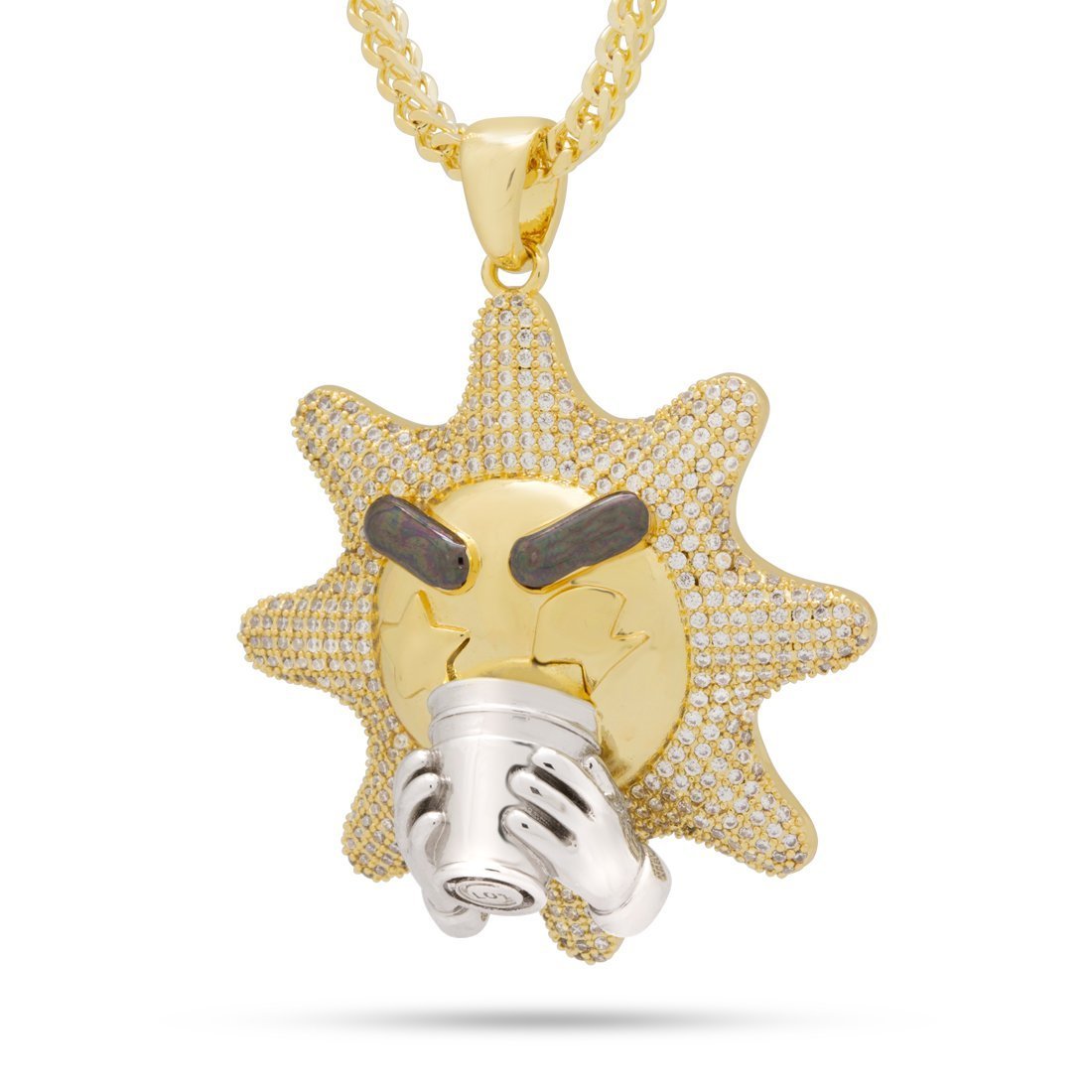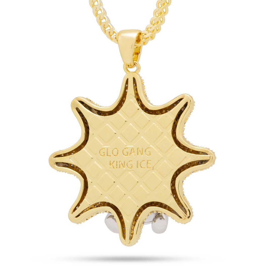 The Glo Cup Necklace is made exclusively by King Ice for its collaboration with Chief Keef. Made in full 3D featuring the sun and double cup, each piece is finished with 14K Gold plating or white gold plating and Grade AAA Lab diamonds for a vibrant display. Each piece is paired with a 2.5mm, 20" Stainless Steel Franco Chain.
