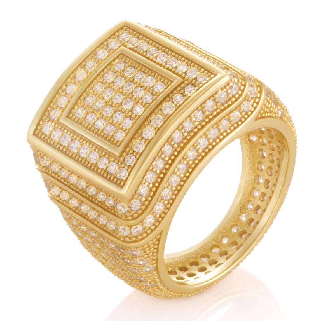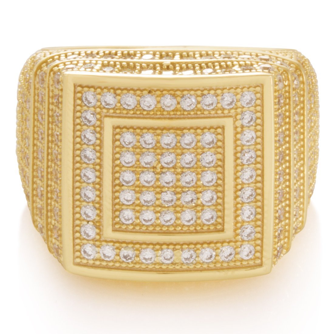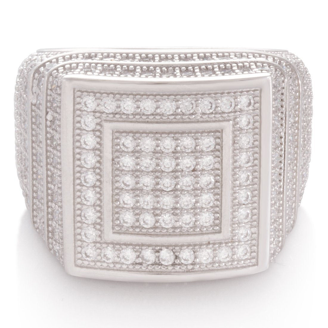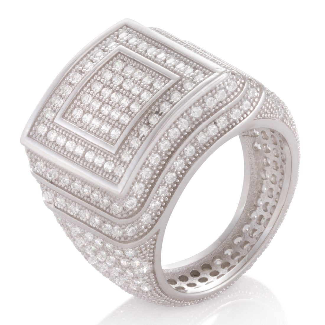 Made from solid .925 Sterling Silver, The Elevated Sterling Silver Ring provides a stunning display of symmetrical design. Each ring features handset VVS Diamond Simulate stones that cover the exterior. Available in 14K gold plating and white gold plating for an unrivaled look.