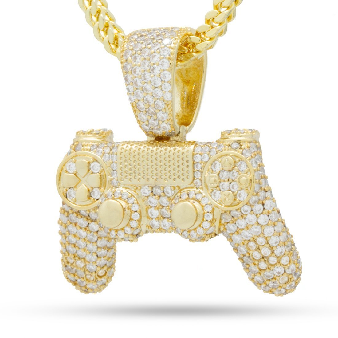 The new Iced Classic Controller Necklace pays tribute to the classic gaming brand and its controller. The 14K Gold and white gold plated controller has the familiar buttons and touch pad engraved, while the thumbsticks have a full 3D design. All four L and R buttons are also present, completing the ultimate controller design. Round cut VVS Diamond Simulates encrust the controller in its entirety for a polished look. Each necklace is paired with a 2.5mm, 20" Franco Chain.
