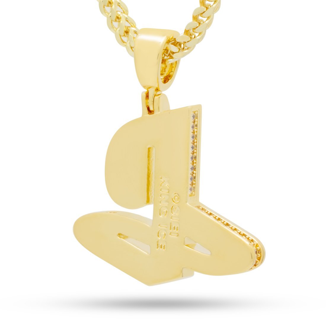 The original logo is unmatched for its classic design. Using round cut VVS Diamond Simulates, King Ice is able to re-capture the original symbol with a glistening finish. Each pendant is plated with 14K Gold or white gold plating that fans and gamers can appreciate. Each PS logo is paired with a 2.5mm, 20" Stainless Steel Franco Chain.