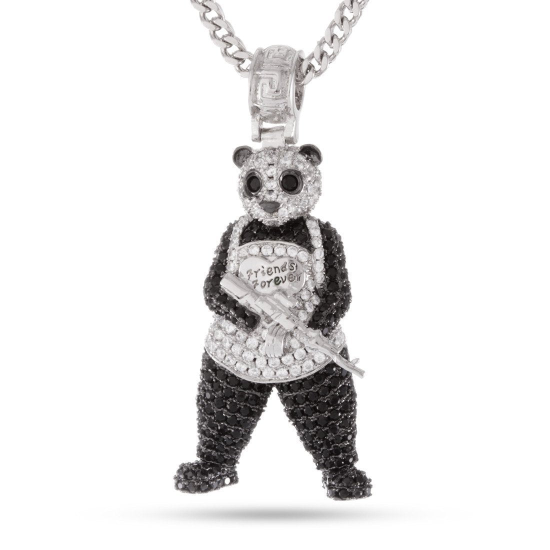 The iconic Joker henchmen, Panda Man may look friendly and loveable, but equipped with an automatic rifle, he’s everything but friendly. Each White Gold piece uses AAA, handset stones to define his look, while its detailed AK-47 assault rifle replicates the deadly accuracy of one of the most destructive weapons in history. Each Panda piece uses white gold plating and includes a 2.5mm, 20” stainless steel Franco chain.