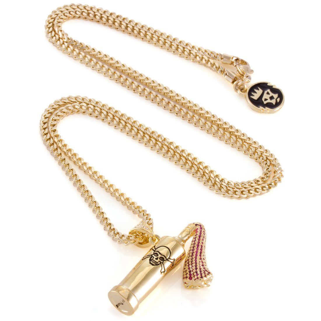 Back in the day, the D-O-Double G rebelled against the music establishment and brought gangster rap to the mainstream. Now, playing tribute to this rebellious mentality comes the 14k gold Molotov Necklace that provides a means to express your desire for anarchy against the system. Each piece includes a 2.5mm, 24” Franco chain.