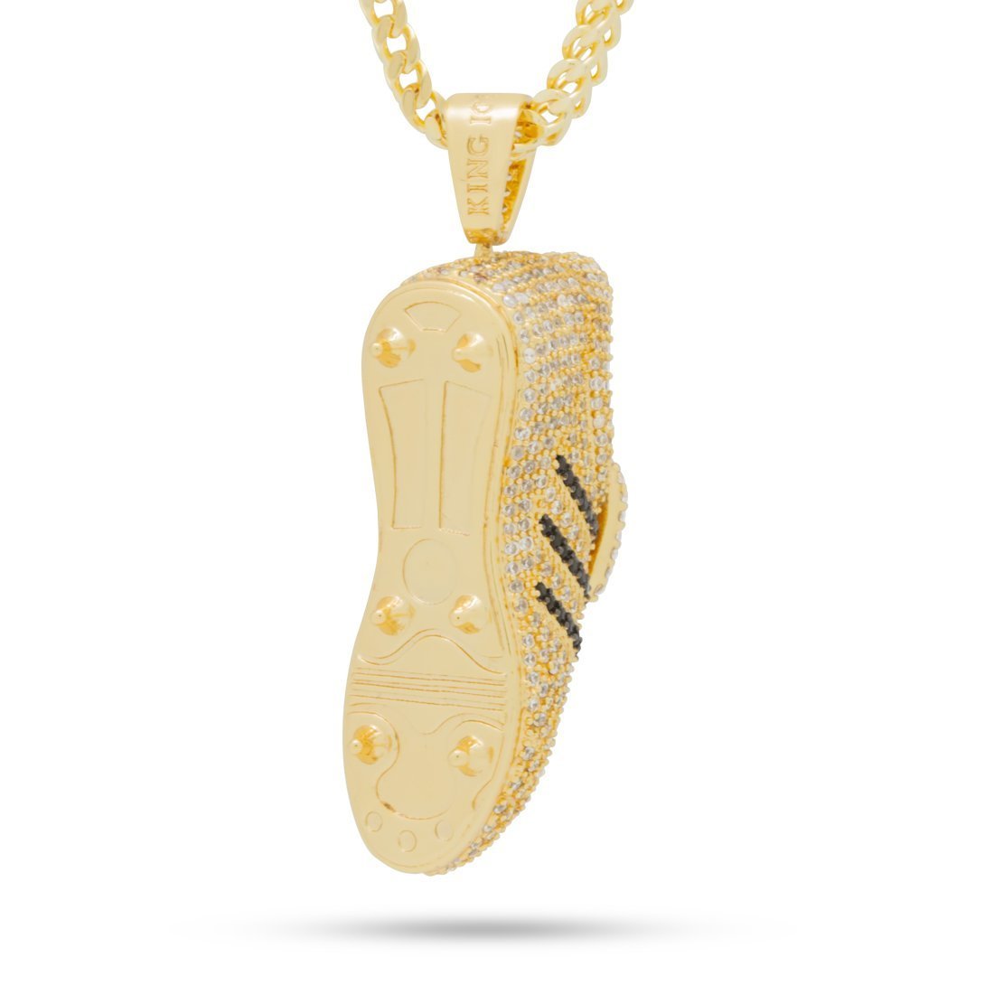 Inspired by a global athletic brand, cleats are a must have for pro and amateur players alike. Made in 3-D with full detail, each Soccer Cleat Necklace is iced with handset VVS Diamond Simulate stones and available in 14K Gold or White Gold. Each piece is paired with a 2.5mm, 20" stainless steel Franco chain.