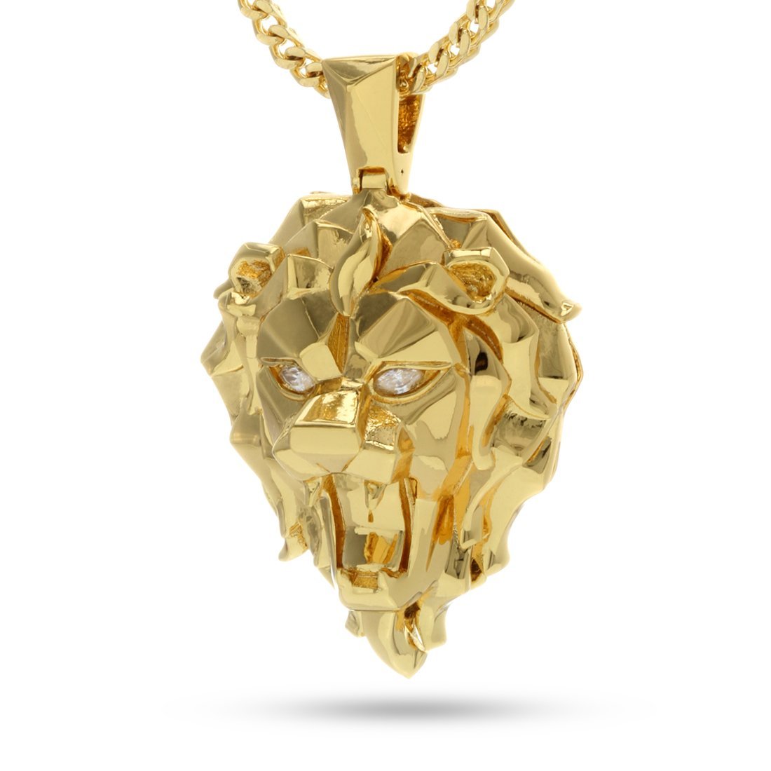 The 14K Gold Faceted Lion provides a pendant fit for a king. Using laser cuts to develop this piece, each item uses handset CZ stones inside of each eye for a bright look. Each lion is dipped five times in 14K Gold plating. The pendant is paired with a 2.5mm, 20" stainless steel franco chain.