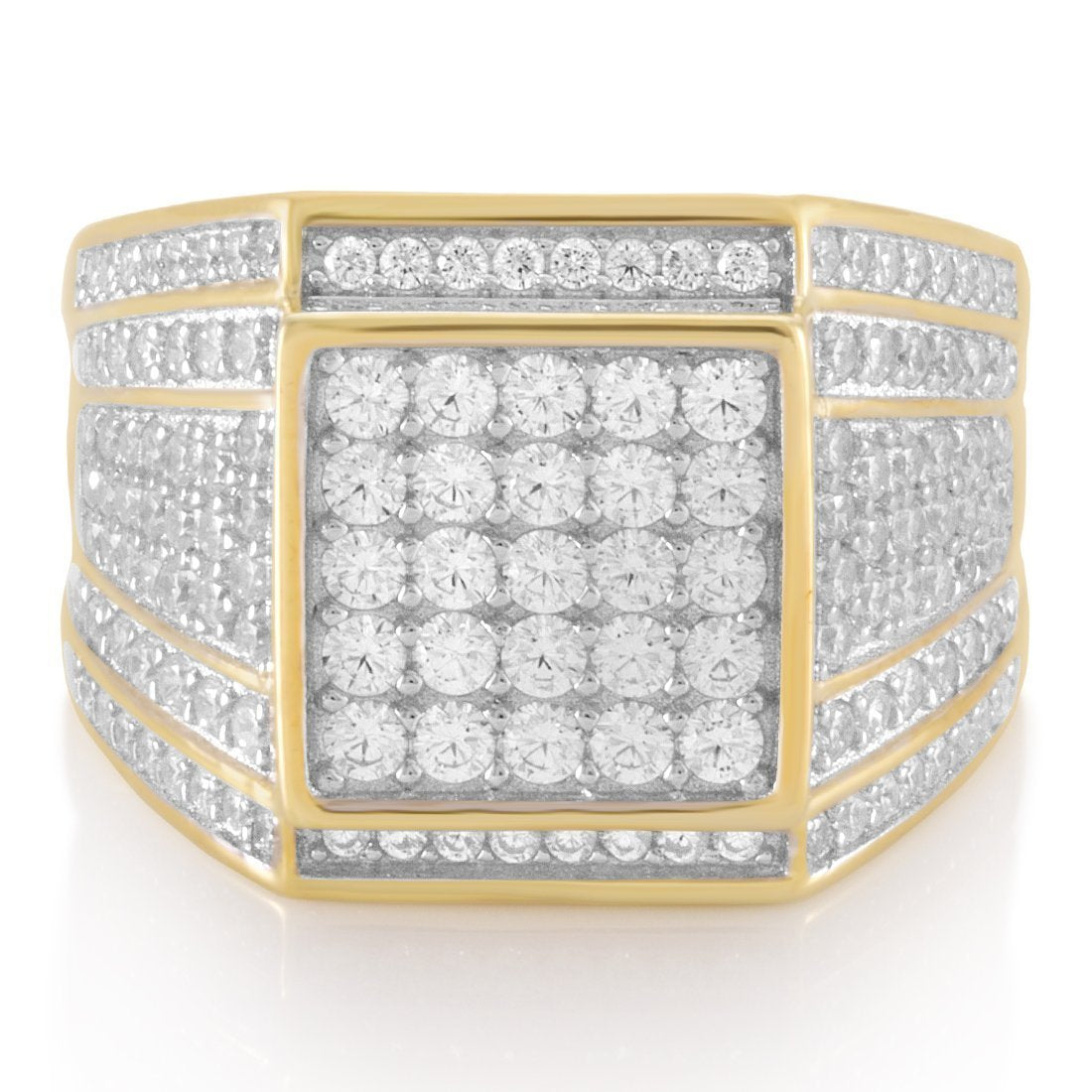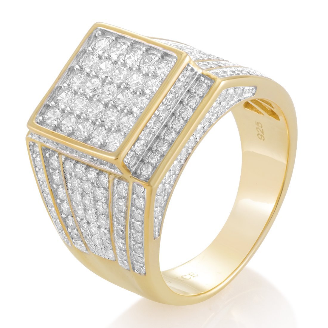 Shinning in any light comes the solid, .925 Sterling Silver Cubist Ring that provides a sturdy, heavy ring perfect for any occasion. Each Ring features AAA, handset CZ rings and includes a micron, plated 14K Gold bottom and a white-gold plated top to give this ring its iconic appearance.