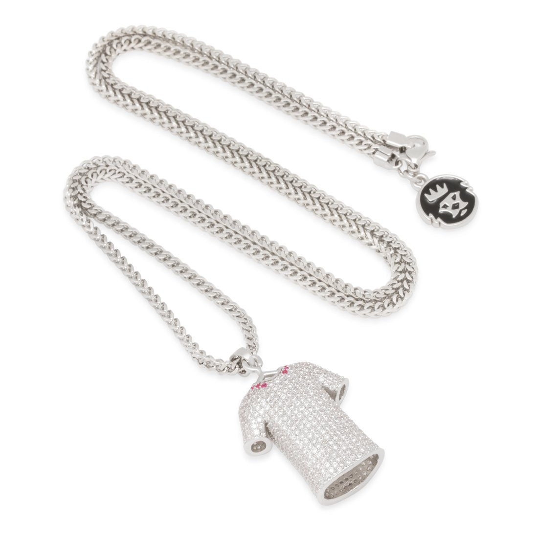 Represent team England, a former winner of the World Cup and one of the favorites this year, with its classic white/silver jersey necklace. Each iconic jersey is finished with white gold plating and lined with Grade AAA CZ stones, and is paired with a 2.5mm Stainless Steel Franco Chain.
