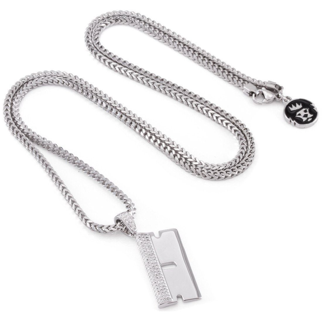 Used for touch ups and alignments, the RZR Blade serves an unparalleled purpose inside any barber shop, and now you can only your very own white gold plated version. Each uses handset, AAA stones and 2.5mm 26" stainless steel Franco chain to provide an iconic look.