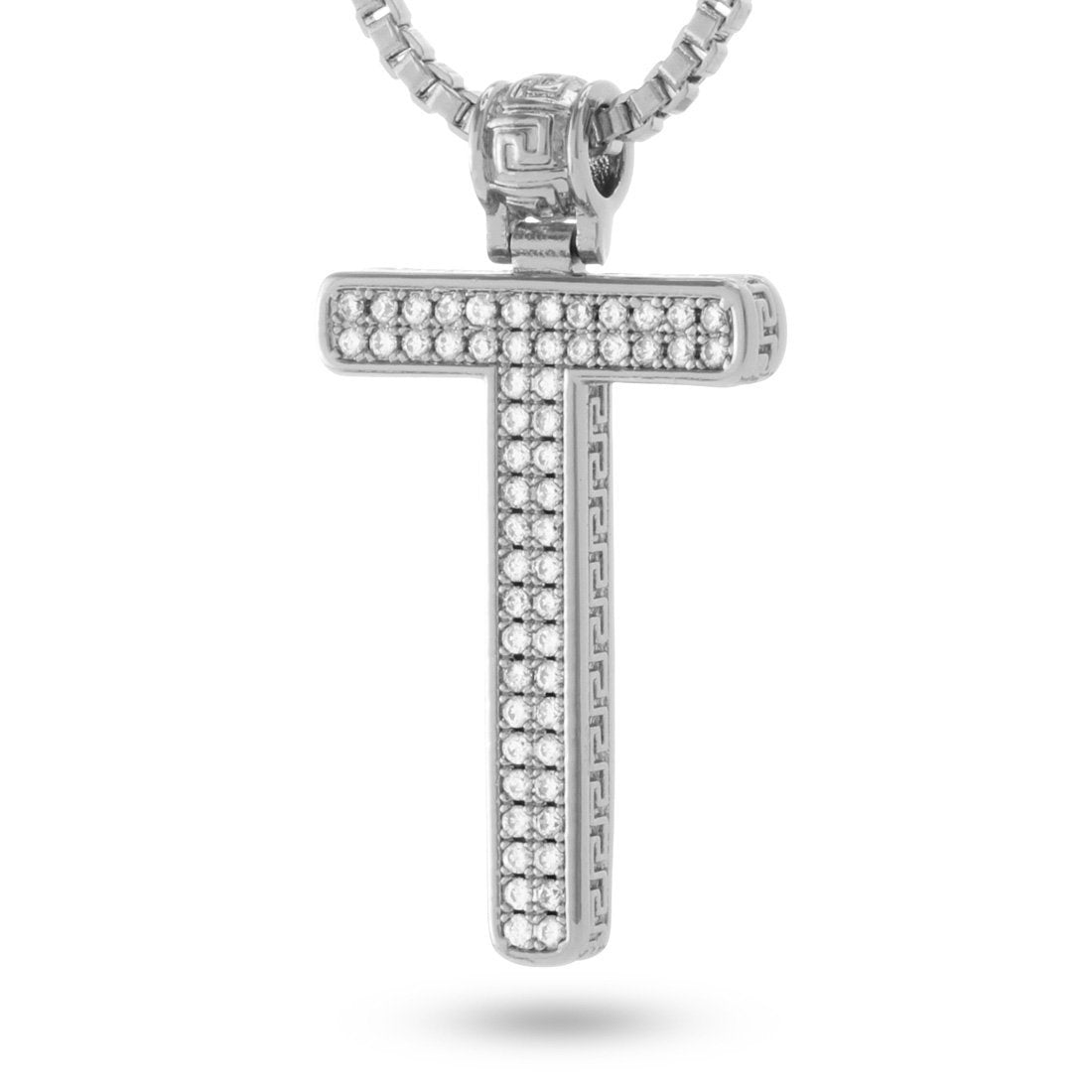 The letter "T" represents a lot to you. Know, you can rock this streetwear-inspired jewelry piece from King Ice. Each letter comes plated in white gold and encrusted with clear, handset CZ stones and include a 2mm, 26" box chain.